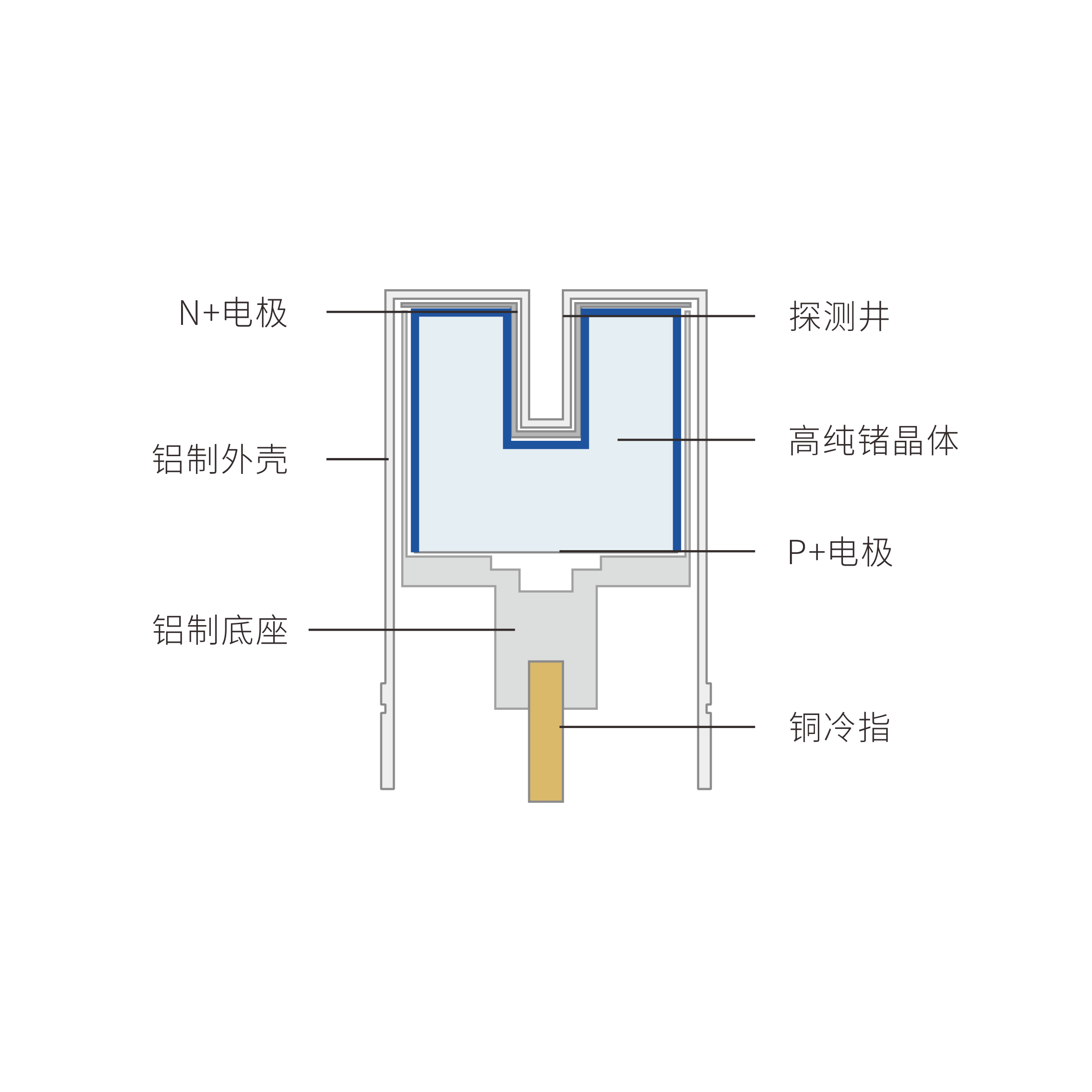 GWS型井型高纯锗探测器适用于小样品测量,小电极结构使它比GWP井型高纯锗探测器具备更优异的能量分辨率,测量时样品几乎全部被探测器灵敏体积包围,探测方向角接近4π,可以获得最大的探测器效率,减少样品测量时间。